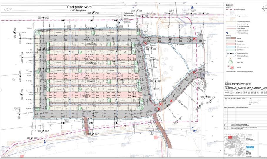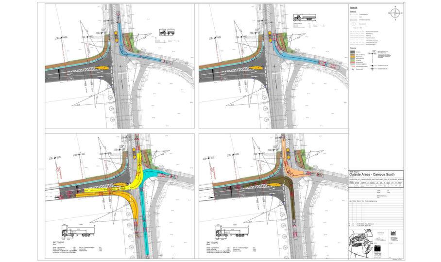 Die Baufelderschließung und der Straßen- und Wegebau umfassten rund 7 ha im Campus North und 12,5 ha im Campus South. Darüber hinaus berücksichtigte die Planung zukünftige Entwicklungsphasen (Stage VII) über 2018 hinaus – ein wesentlicher Beitrag zur nachhaltigen Standortentwicklung.