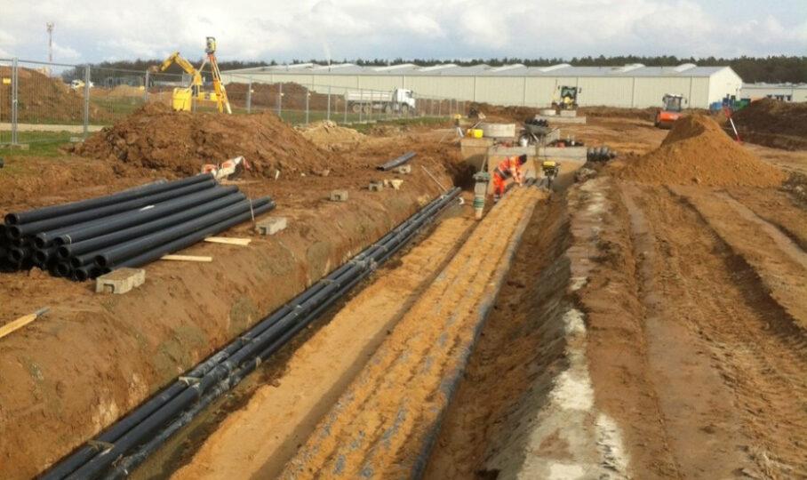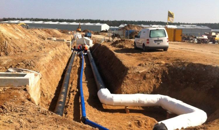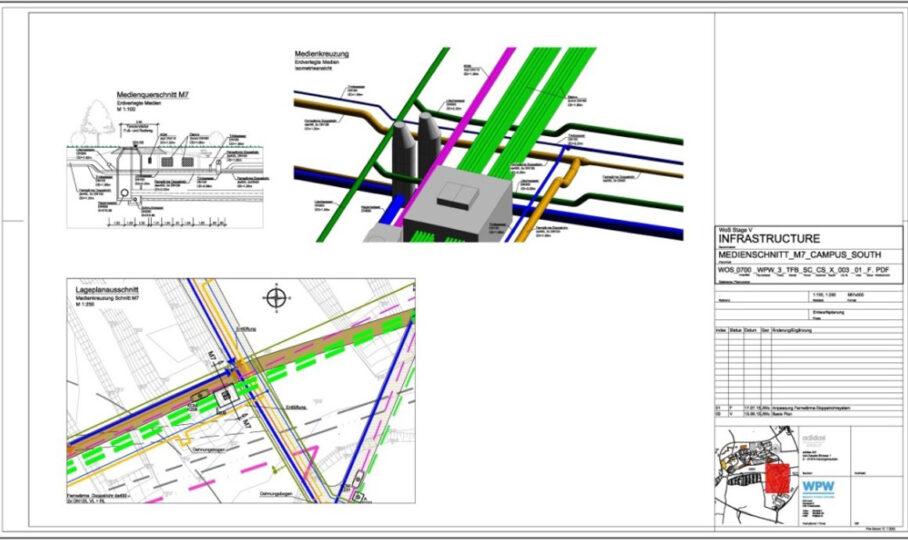 Die Leistungen umfassten die Versorgung der Baufelder mit Fernwärme und Fernkälte, den Aufbau und die Erweiterung der Strom- und Kommunikationsnetze einschließlich Netzersatzanlage sowie die Erschließung mit Trink- und Löschwasser über eine zentrale Löschwasserversorgung. Zudem wurden Abwasserentsorgung und Regenwasserbewirtschaftung mit Retentionsräumen umgesetzt.