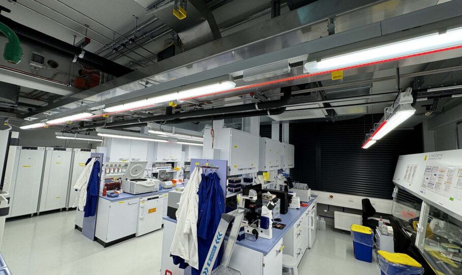 Das INM auf dem Campus der Universität des Saarlandes in Saarbrücken zählt zu den führenden Forschungsinstituten im Bereich chemischer Nanotechnologie, Grenzflächen- und Biogrenzflächenmaterialien. Seit den 1980er-Jahren sukzessive errichtet, beschäftigte das Institut rund 220 Mitarbeitende und gliederte sich in Büro-, Verwaltungs- und zahlreiche Laborbereiche, einschließlich S2-Labore. Aufgrund steigender Anforderungen und veralteter technischer Infrastruktur wurde das Institut Schritt für Schritt bei laufendem Betrieb modernisiert. wpw übernahm sämtliche Anlagengruppen. Die Maßnahmen umfassten die Erneuerung von Beleuchtungs- und Elektroanlagen, RLT- und Laborklimasystemen, Kälte- und Gasversorgung sowie EMV-Konzepte. Besonders sensible Laborbereiche erhielten innovative Kühl- und Versorgungstechniken.